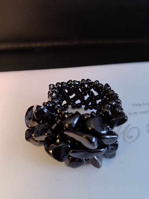 Prilagodljivi prsten u obliku crnog srca od 925 srebra -